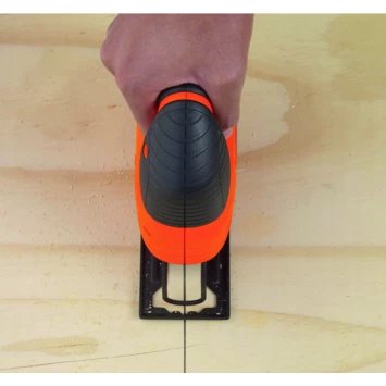 Dankzij de snelheid van 3.000 seconde per minuut, het ergonomische design en het goede zicht op het zaagblad, kun je met deze BLACK+DECKER decoupeerzaag KS501-QS met softgrip zeer nauwkeurig zagen. Dit maakt de decoupeerzaag geschikt voor rechte zaagsneden, bochten en 45° afschuinen. De geïntegreerde stofblazer zorgt ervoor dat de zaaglijn vrij blijft en een continue-schakelaar zorgt voor extra comfort bij langdurig gebruik. De capaciteit van de zaag is bij hout 65mm, metaal 5mm en aluminium 10mm met een zaagslaglengte van 19mm en wordt geleverd inclusief 1 zaagblad voor hout. Zo wordt iedere klus een fluitje van een cent!