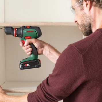 De Bosch accuschroefboormachine AdvancedDrill 18 is krachtig, compact en eenvoudig te bedienen. De accuschroefboormachine beschikt over een schakelaarsysteem met een led-controlelampje voor een wijziging van de draairichting met één klik. Maximale levensduur dankzij borstelloze motor met minimale slijtage en hoog rendement. Deze Bosch accuschroefboormachine AdvancedDrill 18 wordt geleverd met 2 accu’s, een oplader (AL 1830 CV), boorhouderopzetstuk, haakse adapter, excentrische adapter, schroefbit, transportkoffer.
