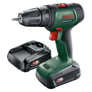 Met de accuschroefboormachine UniversalDrill 18 van Bosch bent u in één keer klaar. U haalt een krachtige en veelzijdige accuboormachine in huis. De Universal Drill 18 bevat de handzame en veelzijdige accuboormachine met twee Lithium-ion accu’s van 1.5 Ah en een 1-uurslader. Met deze schroefboormachine boort u moeiteloos in hout tot 30 mm en in metaal tot 10 mm. Door het geïntegreerde PowerLight beschikt u altijd over voldoende licht bij het schroeven en boren. De accuschroefboormachine UniversalDrill 18 van Bosch biedt u dus veel gemak en en urenlang klus comfort.