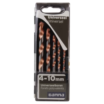 De Gamma universeelboorset is geschikt voor: metselwerk, steen, keramiek, metaal, kunststof, hout, glas en tegels. De 5-delige set bevat boortjes van 4, 5, 6, 8 en 10mm.