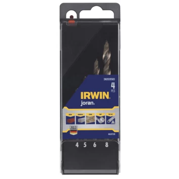 IRWIN Pro Performance betonborenset IW2039503 is een 4-delige cassette met daarin 4 betonboren met een diameter van 4, 5, 6 en 8mm. Dankzij het ontwerp zijn deze boren bij uitstek geschikt voor het snel en accuraat boren in natuursteen, beton en metselwerk. De boortjes zijn ideaal voor snoerloze boormachines en zijn gemaakt van kwalitatief hoogwaardig staal. Ze zijn precies gewalst en hebben een kopergesoldeerde Tungsten Carbide geleidepunt en unieke centreerpunt. Daarnaast hebben de boortjes een draaivaste schacht met 3 platte vlakken om klemgrip te verzekeren. De boren leveren bij contact direct schone, braamvrije gaten op en hebben een lange levensduur.