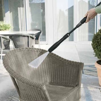 De Kärcher vario power spuitlans VP145: van lagedrukstraal met reinigingsmiddel tot hogedrukstraal met traploos verstelbare drukregeling door eenvoudig aan de spuitlans te draaien. Ideaal voor het reinigen van kleinere oppervlakken rondom huis en tuin, zoals muren, paden schuttingen en voertuigen. Geschikt voor alle Kärcher-hogedrukreinigers van de klasse K4 en K5.