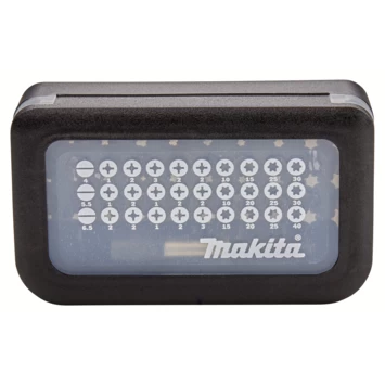 31-delige Makita schroefbitset bestaande uit 30x schroefbits 25mm en een magnetische bithouder in handige kunststof meeneemverpakking.