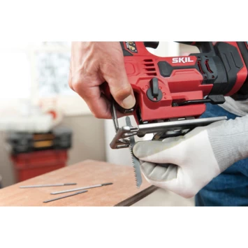 De SKIL 3420, een 20V Max (18 V) accu-decoupeerzaag, is bij uitstek geschikt voor nauwkeurig zagen van gebogen en rechte zaagsneden. Goede zichtbaarheid van uw werk wordt gewaarborgd door de LED-lamp. Dankzij de materiaalselector met vier instellingen kunt u altijd de juiste instelling voor de klus vinden. De variabele-snelheidsregeling zorgt ervoor dat u deze decoupeerzaag optimaal in diverse materialen kunt gebruiken. Met het gereedschapsloze Clic-systeem kunnen zaagbladen eenvoudig gewisseld worden zonder dat u gereedschap nodig hebt. Andere handige kenmerken van dit gereedschap zijn de stofblazer die een duidelijk zicht op uw werkstuk geeft en de zonder sleutel te verstellen voetplaat die verstekzaagsneden tot 45° mogelijk maakt. Voor een schonere werkomgeving past de stofzuigeradapter op de meeste gangbare stofzuigers. Bovendien zorgt het ergonomische ontwerp met softgrip voor extra gebruikscomfort. De SKIL 3420 CA is wordt geleverd met drie zaagbladen voor hout, twee zaagbladen voor metaal en een stofzuigeradapter. De accu wordt niet meegeleverd.