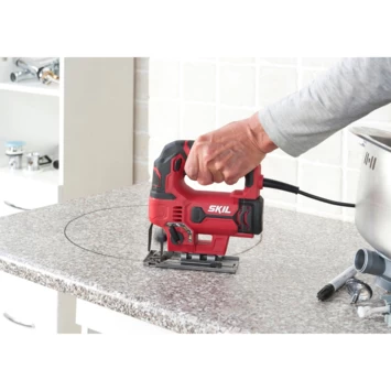De 550W SKIL 4530 decoupeerzaag is uitermate veelzijdig. Hij is geschikt voor zowel gebogen als rechte zaagsneden in talrijke materialen.. Dankzij de materiaalselector met vier instellingen kunt u altijd de juiste instelling voor de klus vinden. Met de schakelaar met variabele-snelheidsfunctie kunt u de zaagsnelheid voor optimale resultaten regelen. Met het gereedschapsloze ‘Clic’-systeem kunnen zaagbladen eenvoudig gewisseld worden zonder dat u gereedschap nodig hebt. Andere handige kenmerken van dit gereedschap zijn o.a. de stofblazer die een duidelijk zicht op uw werkstuk geeft en de grote schakelaar met vergrendelknop voor continu gebruik. Met de verstelbare voetplaat kunnen verstekzaagsneden van 45° worden gemaakt. Voor een schonere werkomgeving past de stofzuigeradapter op de meeste gangbare stofzuigers. Bovendien zorgt het ergonomische ontwerp met softgrip voor extra gebruikscomfort. De SKIL 4530 GA wordt geleverd in een stevige draagkoffer, inclusief 7 zaagbladen en een stofzuigeradapter.