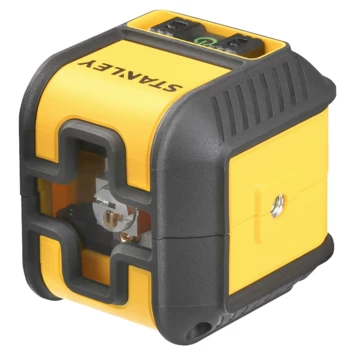 De Stanley kruislijnlaser CUBIX rood 12 meter is zeer eenvoudig te bedienen. Volledig zelfnivellerend (tot ± 4°) met een nivelleringstijd van minder dan 5 sec. Met manuele modus om hoeklijnen uit te zetten. De rode laserlijn heeft een bereik van 12m met een nauwkeurigheid van 6mm@10m. Flexibele 360° plaatsing mogelijk dankzij meegeleverde Quicklink-steun. Een ideaal hulpmiddel voor het uitzetten van lijnen bij bijvoorbeeld het betegelen van vloeren en muren, bij het ophangen van schilderijen of het plaatsen van een trapleuning. Voorzien van een robuuste behuizing met rubberen bescherming en vergrendelbaar pendulum voor probleemloos transport. Standaard schroefdraad voor statief 1/4″. IP50 bescherming tegen stof. Laser klasse 2. De Stanley kruislijnlaser CUBIX rood 12 meter wordt geleverd inclusief: 2 x AA batterijen, opbergzakje en Quicklink-steun.