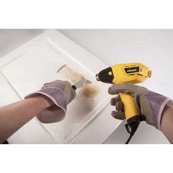 Een heteluchtpistool voor kleine projecten in en rondom je huis, dat is de Wagner heteluchtpistool Furno 300. Met zijn 2 temperatuurstanden van 400°C en 575°C en een vermogen van 1600 watt, is dit heteluchtpistool te gebruiken voor verschillende werkzaamheden. Denk hierbij aan het verwijderen van verf, losmaken van roest en ontdooien van bevroren buizen tot het aansteken van houtskool in je barbecue en krimpen van krimpkousen. De ergonomisch gevormde greep zorgt voor comfortabel en verantwoord werken. Dankzij het thermisch uitschakelmechanisme en hitteschild met afstandhouders bescherm je oppervlakken en werk je veilig. Met de stabiele standvlakken aan de achterzijde werk je zelfs met 2 handen tegelijk. Kortom: een perfect heteluchtpistool voor de beginnende gebruiker.